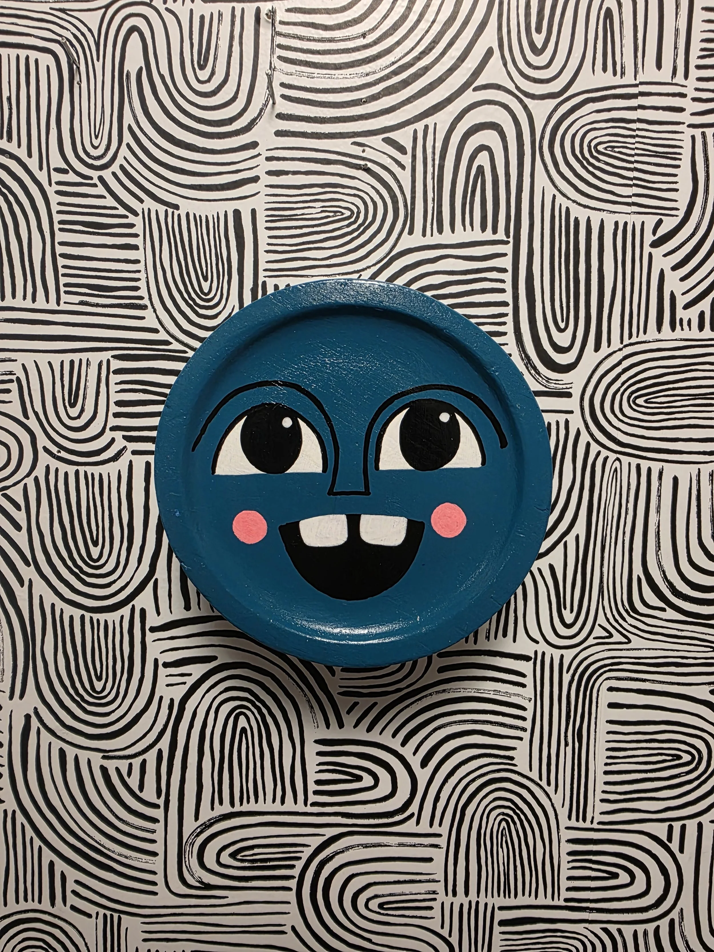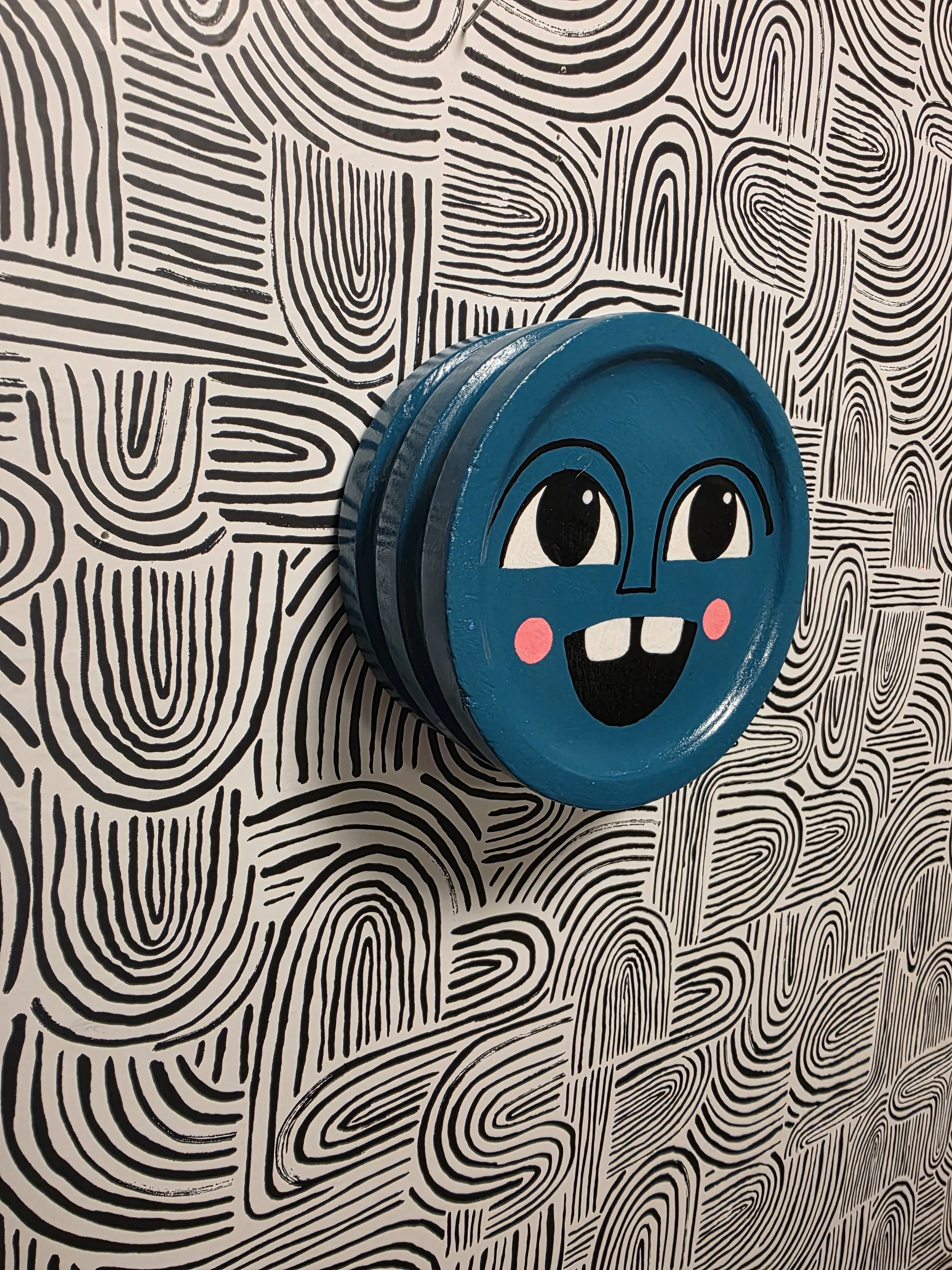 Reclaimed wood ‘mask’ piece painted in my Little Dude style. Wall art with hanging hardware included.