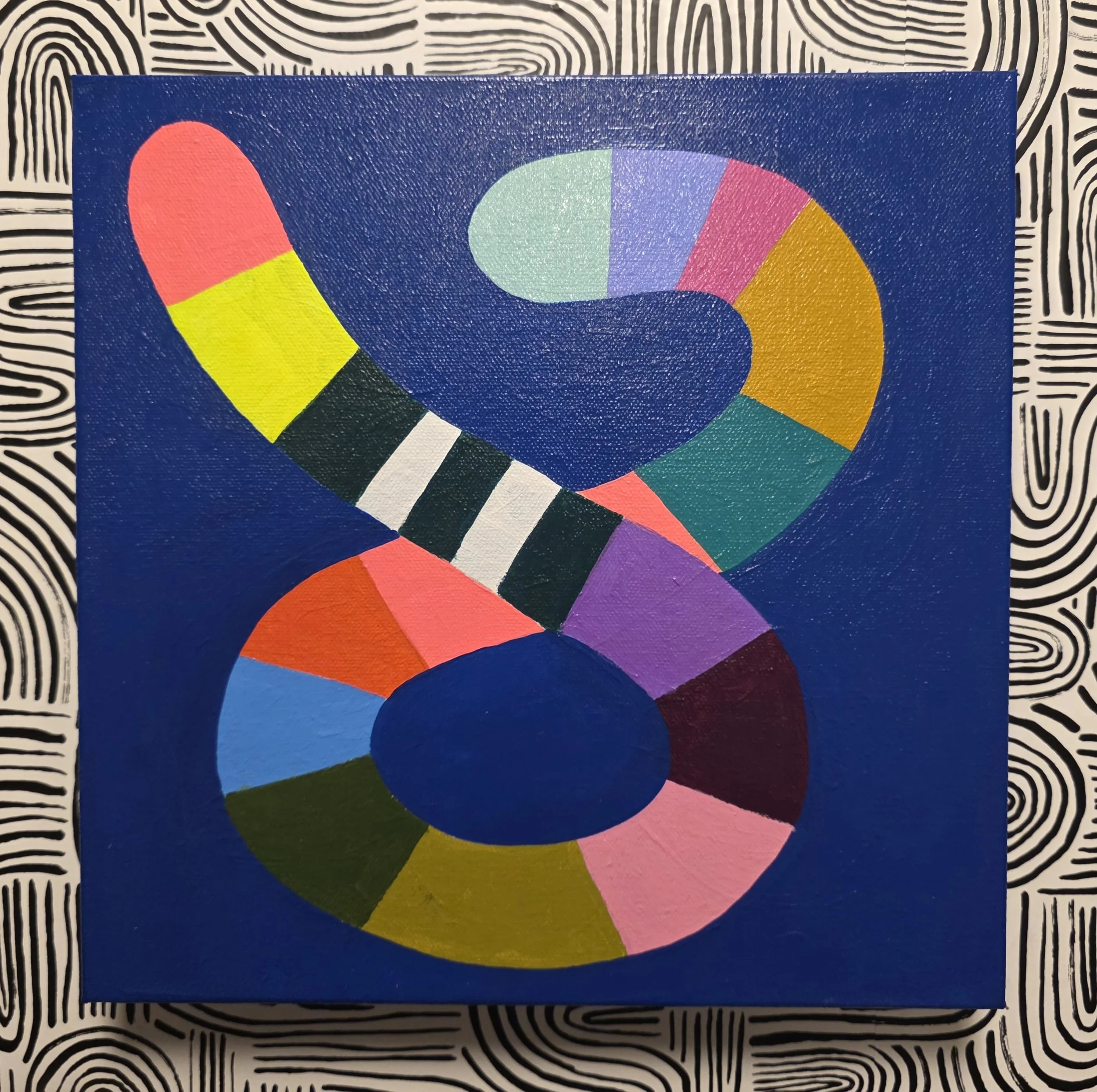 SHOP ART › Scoop Image 1 of 1 Scoop $135.00 12x12 squiggle painting on canvasCreated in April 2026 Add To Cart Added! 12x12 squiggle painting on canvasCreated in April 2026
